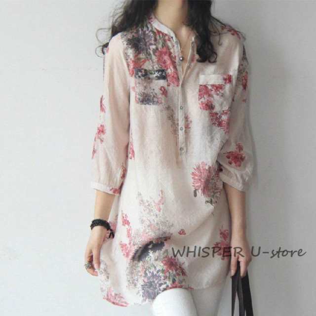 七分袖シャツ レディース チュニック 夏 大きいサイズ 花柄 軽量 コットン 長袖 30代 40代 50代 60代