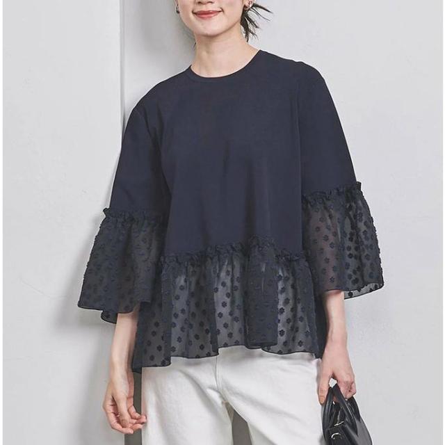 シフォンブラウス tシャツ 切り替え レディース 丸首 七分袖 ドッキングブラウス 切替tシャツ プルオーバー トップス 体型カバー 可愛い 春夏秋 無地