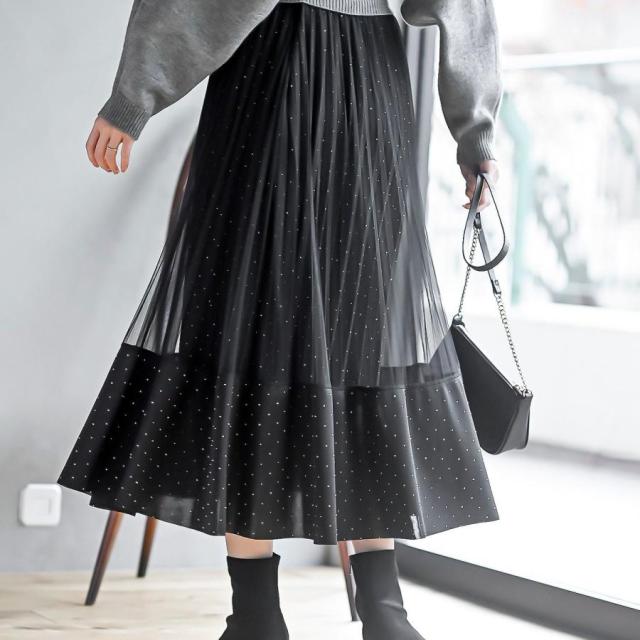 スカート切り替え ひらひら 黒スカート レディース 春秋 スカート ロングスカート ミモレ丈 レイヤード風スカート おしゃれ aラインスカート ウエストゴム