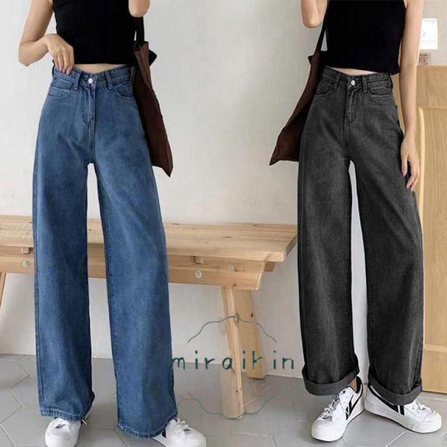 デニムワイドパンツ ハイウエスト レディース ロングパンツ ストレートパンツ カジュアル ズボン 韓国風 ジーンズ ゆったり ボトムス 春夏 ロールアップ