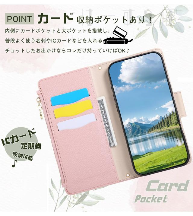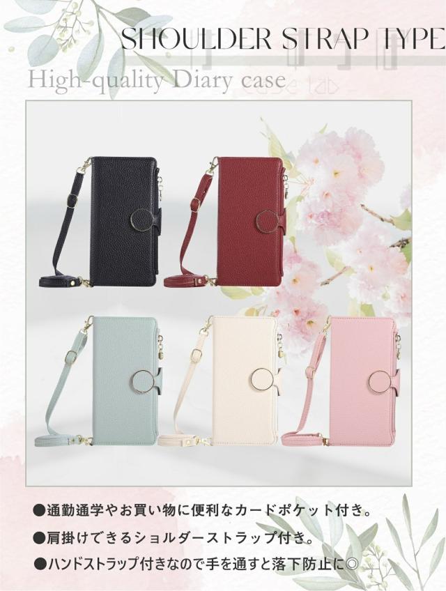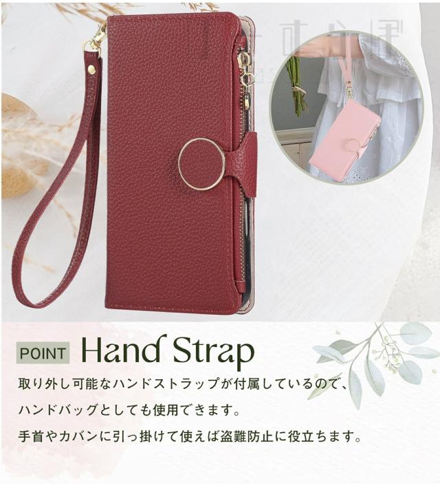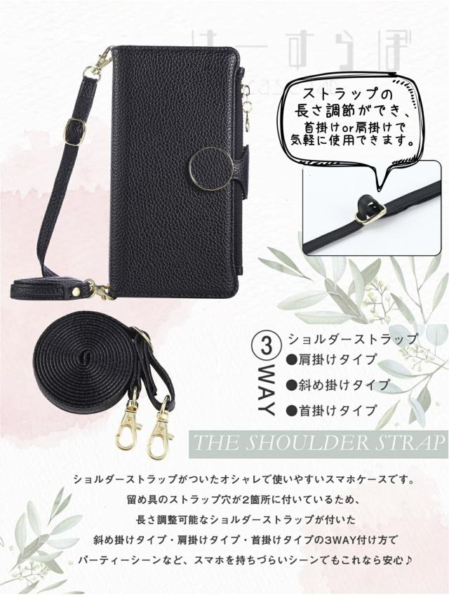 カード入れ・ハンドストラップ・ショルダーストラップ付きの 手帳型 スマホケース です。