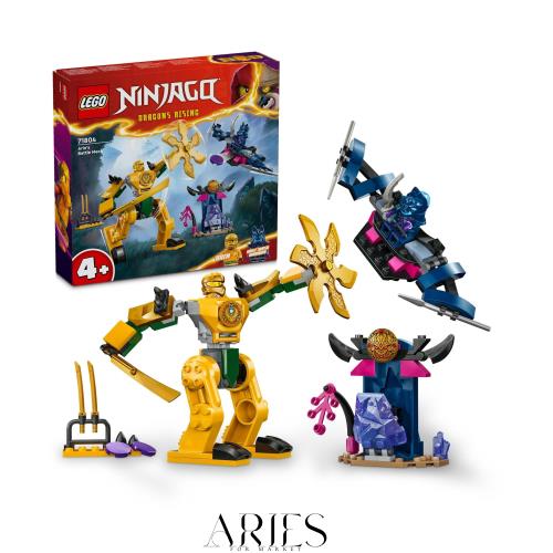 エリンのバトル・メカスーツ(71804)は、ドラゴンを守るために戦うニンジャの物語を通じて、組み立てスキルを学べる組み立てセットです。カッコいいメカスーツを使い、『ニンジャゴー ドラゴンライジング』のアクションを再現できます。(対象年齢:4才以上) エリンと敵のミニフィギュアは、それぞれ剣のアクセサリー付き。エリンのミニフィギュアが入るメカスーツは回転ブレードと大剣を構え、敵が乗るグライダーはディスクシューターと槍2本を搭載し、翼の向きを変えられます。魔法の木槌が隠された水晶の洞窟やゴールドの剣2本を収納する武器棚などもごっこ遊びを盛り上げます。 お子さまの年齢に応じた組み立てとごっこ遊びを念頭に特別開発されたプレイセットです。大きめの基礎ブロックを土台にして、お子さま一人でも自信をもって簡単に組み立てられます。(対象年齢:4才以上)
