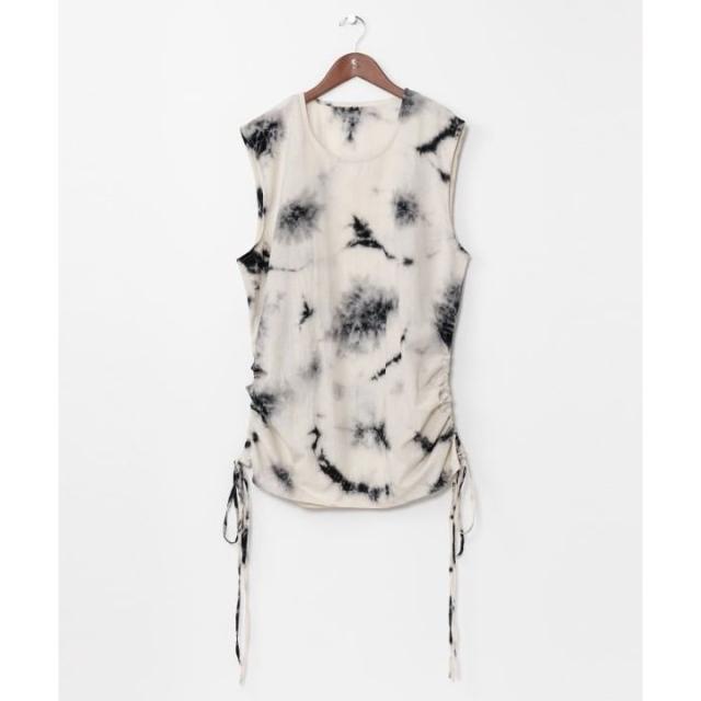インドのタイダイ柄が映えるタンクトップ。裾のストリングでシルエットを調整できるため、自分好みのスタイルが楽しめる。軽くやわらかな綿素材で、インナーとしてはもちろん、トップスに重ねてもさまざまなコーディネートで活躍。