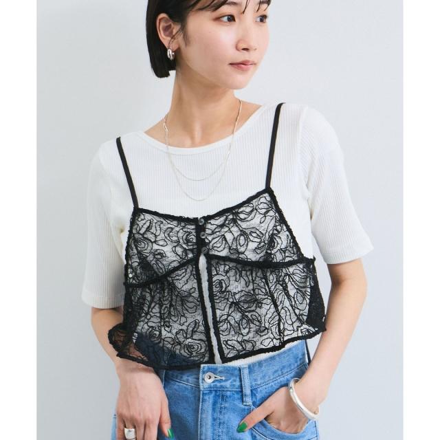 繊細なレースなので、あえてラフにTシャツとのレイヤードが可愛い!
