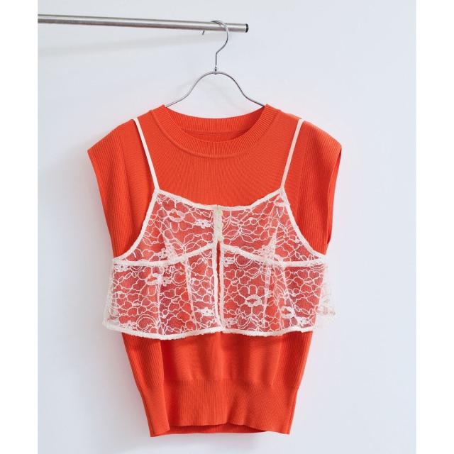今シーズントレンドの繊細なシアーコードレースを使用し胸下切り替えギャザーとフロントの釦がフェミニンなビスチェ。