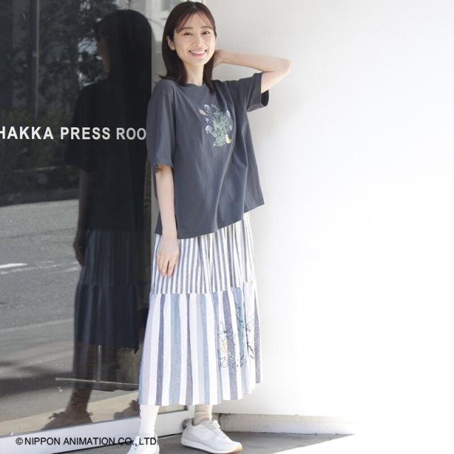 スーパーハッカ(SUPER HAKKA)/SUPER HAKKA×世界名作劇場 あらいぐまラスカルとシロツメクサ刺繍Tシャツ