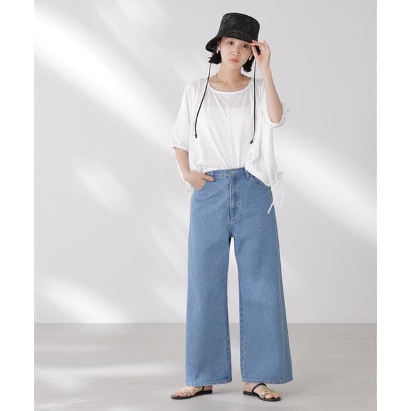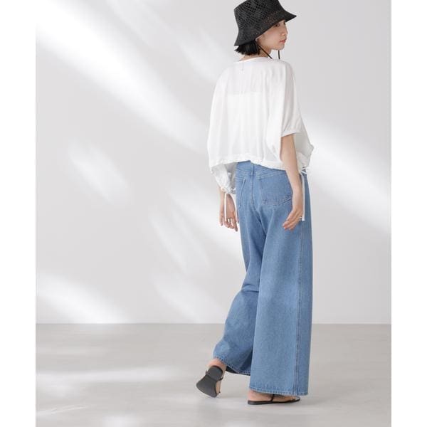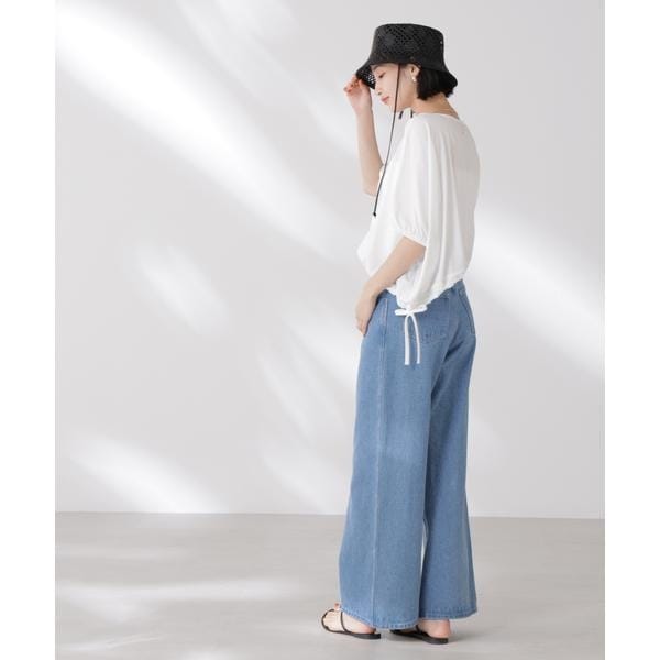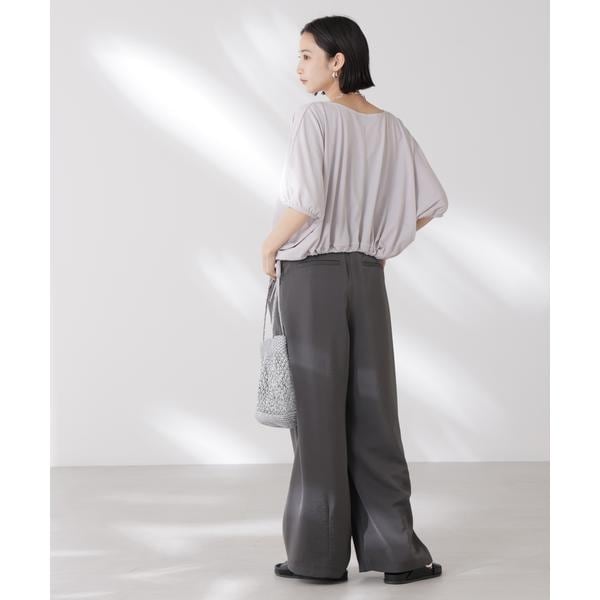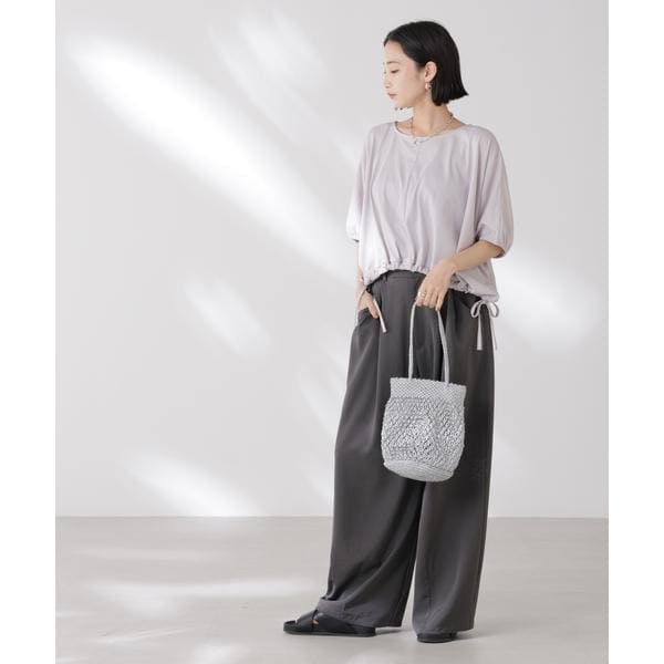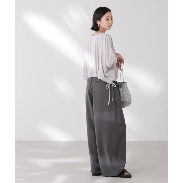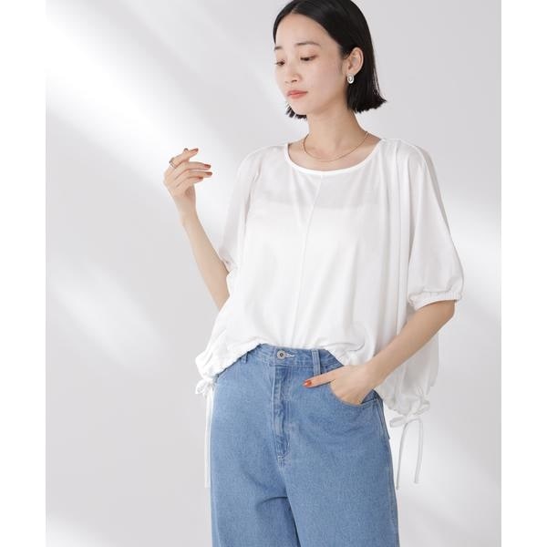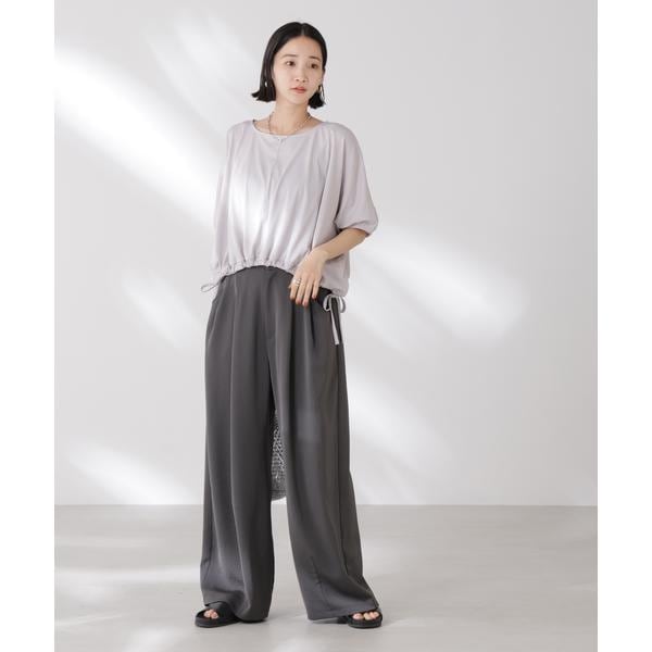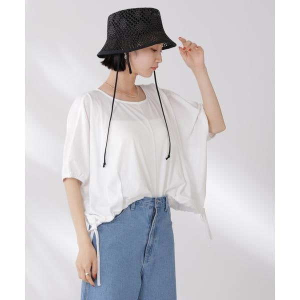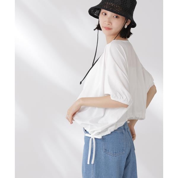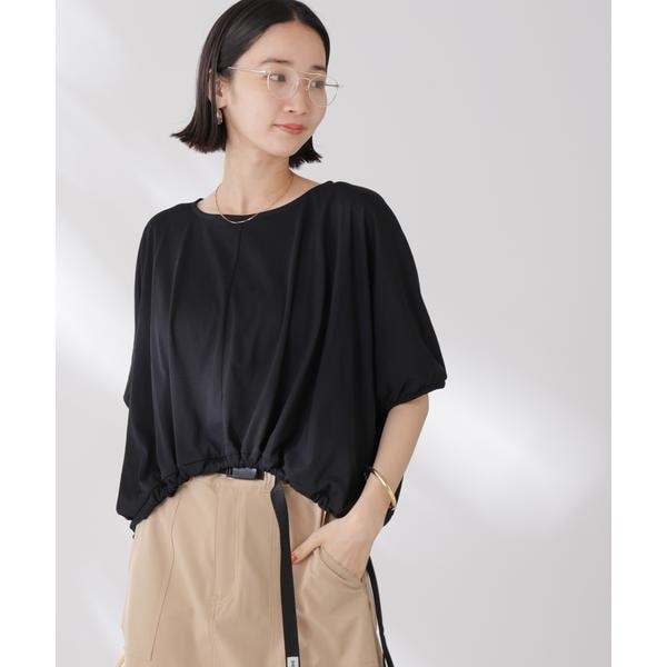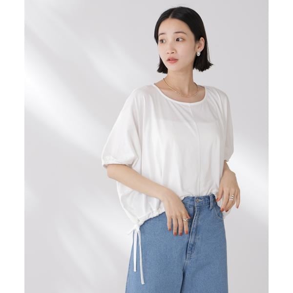 夏に嬉しい吸水速乾・抗菌防臭の機能を持ち合わせたカットソーシリーズ。ドロストデザインの裾は好きな位置で結ぶことで、ギャザー分量の調整も可能。同素材展開の型違いトップスと一緒に夏のワードローブに揃えておきたい一品です!