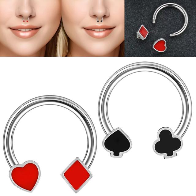 トランプのスペードとクローバー、ハートとダイヤのマークをデザインしたステンレス製の16ゲージのサーキュラーバーベル型ボディピアス。