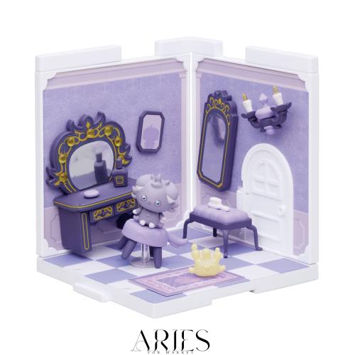 【セット内容】壁1(1),壁2(1),床(1),接続パーツI型(2),接続パーツL型(1),接続パーツT型(1),ドア(1),家具・小物パーツ(ランナー)(5),紙小物(1),シール(1),鏡面シール(1),ニャスパー(おすわり)(1),マホミル(にこにこ),