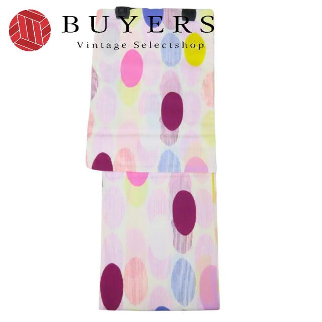中古 未使用展示品 浴衣 綿 白 マルチカラー 水玉 ストライプ 可愛い 和装 呉服 和服 きもの レディース 女性