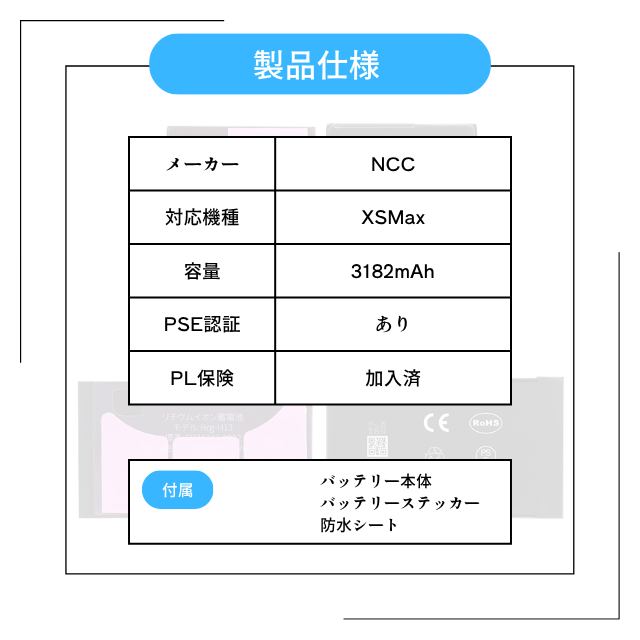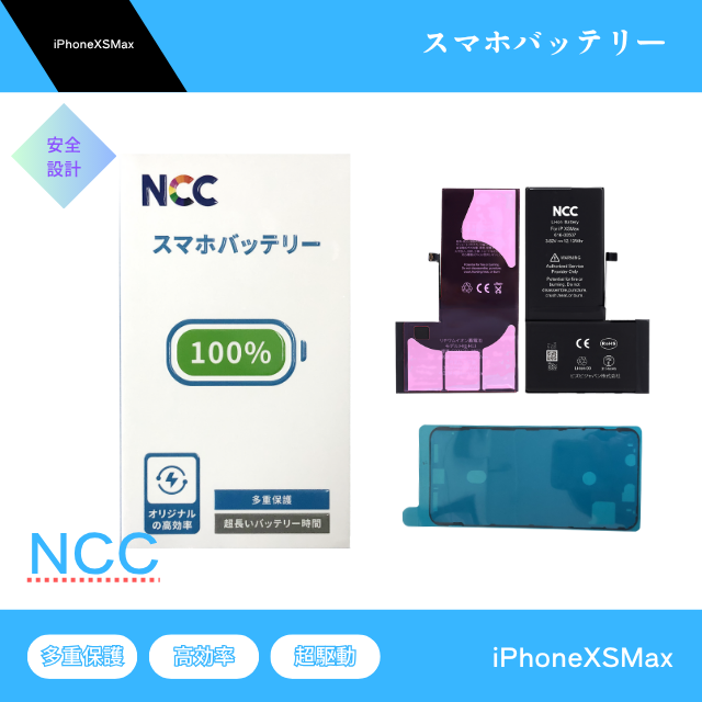 iPhoneXSMax バッテリー NCC Prime 交換 純正同等 バッテリー 防水シート バッテリーステッカー PSE取得