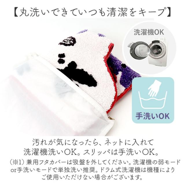 | 商品説明 | 【ほっこり癒されて気分も上がる☆】 ・お花畑でちょうちょと遊ぶ、ムーミンキャラクター♪「ペルホネン トイレ4点セット」。 【立体感のあるマット&フタカバー】 ・太めの糸を使用し、毛足の長さに変化を。まるでムーミンたちが、絵本から飛び出してきたよう♪ 【繊細に表現したプリントデザイン】 ・ホルダーカバーとスリッパは、さらりとした質感の生地に転写プリント。鮮やかな色合いが魅力♪ 【丸洗いできていつも清潔をキープ】 ・汚れが気になったら、ネットに入れて洗濯機洗い。スリッパは手洗いOK。 (※1)兼用フタカバーは吸盤を、ホルダーカバーは差込板を外してください。洗濯機の弱モードor手洗いモードで単独洗い推奨、ドラム式洗濯機は機種によりご使用いただけない場合がございます。 【殺風景なトイレを明るく演出】 ・空間に温かみをプラス。お気に入りのアイテムで、素敵にコーディネート♪ ・≪トイレ足元マット≫ 【ふんわり快適な踏み心地も魅力】 ・柔らかな質感のマットが、足裏を優しく受け止める◎素足でも抜群の肌触り。 【2種類の質感&吸水速乾性も】 ・背景はふんわりマイクロファイバー、キャラクターはサラッとパイル。水滴を吸水、乾きも速い! 【ズレにくく、プチストレスを軽減】 ・裏面にはドット状の滑りにくい加工済み。気になるズレを抑えて快適。 ・≪兼用フタカバー≫ 【異なるタイプの便座に対応】 ・U・O型、温水洗浄・暖房型にも使用可能。引越し先でもそのまま使えて、買い替え不要。 【取り付け簡単!ピタッと吸着】 ・吸盤を使用して装着。吸盤をしっかり固定できて、ぴったりフィット。 (※2)便座タイプにより若干取り付け方法が異なります。 ・≪ペーパーホルダーカバー≫ 【差し込むだけで着脱カンタン】 ・差込板をフタ後部の隙間から下に差し込み。差込板の厚み1.2mmに対応。 (※3)横に2列並んだタイプ、収納一体型の備え付けタイプなど、ペーパーホルダーの種類により取り付けできない場合がございます。 【ストックできるスペアカバー】 ・スペアカバー付きなので、予備のトイレットペーパーもセットOK! |