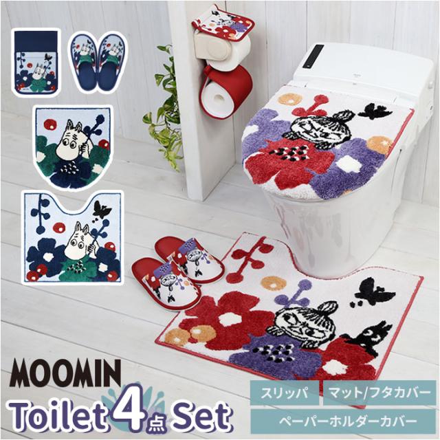 ムーミン トイレ グッズ 通販 トイレカバー セット 北欧 4点セット トイレマット 蓋カバー スリッパ ペーパーホルダー O型 U型 洗浄暖房型 おしゃれ かわいい キャラクター MOOMIN ちょうちょ トイレタリーセット トイレファブリック トイレ用品