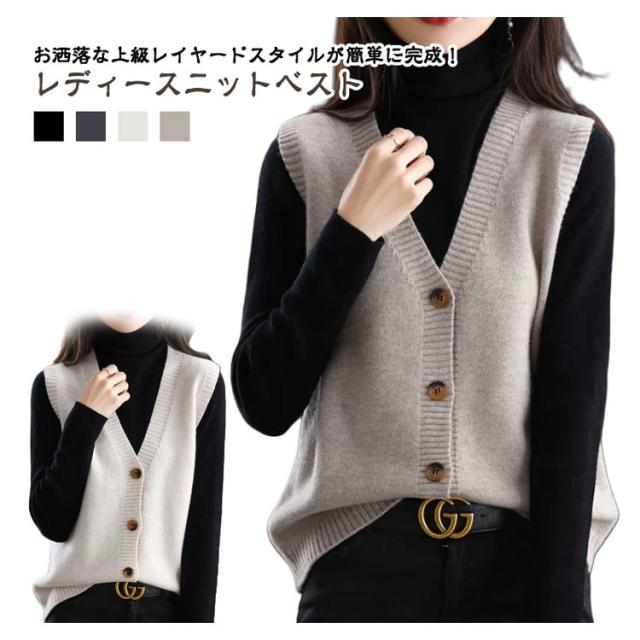 ベスト レディース ニットベスト 前開き 春 秋 冬 オフィス オフィスウェア 重ね着 トップス レイヤード 無地 シンプル ノースリーブ 袖なし 防寒 柔らかい 大人女性 通勤 通学 ギフト プレゼント おしゃれ カジュアル 送料無料