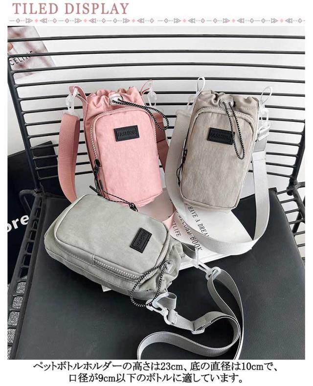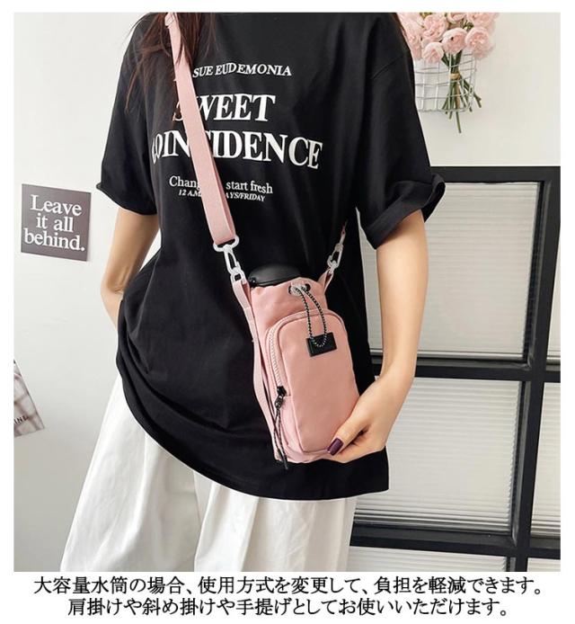 | 3WAY持ち方水筒キャリアカバー 防水撥水加工 大容量 500ml-1000ml ペットボトルホルダーの高さは23cm、底の直径は10cmで、口径が9cm以下のボトルに適しています。 また、調整可能な引き紐が付いているので、ボトルが揺れずにしっかり固定できます。 ペットボトルカバーは調節可能なショルダーストラップを付きます。また、手で持ち運べる固定ハンドルストラップも追加しました。 ジッパー式の外ポケットは携帯電話、鍵など普段持ち歩く小物を収納できます。 調節可能なショルダーストラップは体型問わず、大人・子供関わらずすべての方々にご利用いただけます。 大容量水筒の場合、使用方式を変更して、負担を軽減できます。肩掛けや斜め掛けや手提げとしてお使いいただけます。 おしゃれなデザインで日常通勤通学やアウトドアなど、水筒やマイボトルを持ち歩くのは便利です。 | |