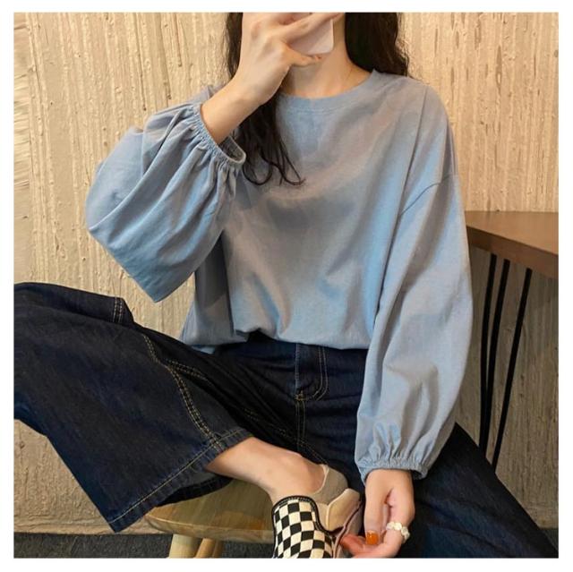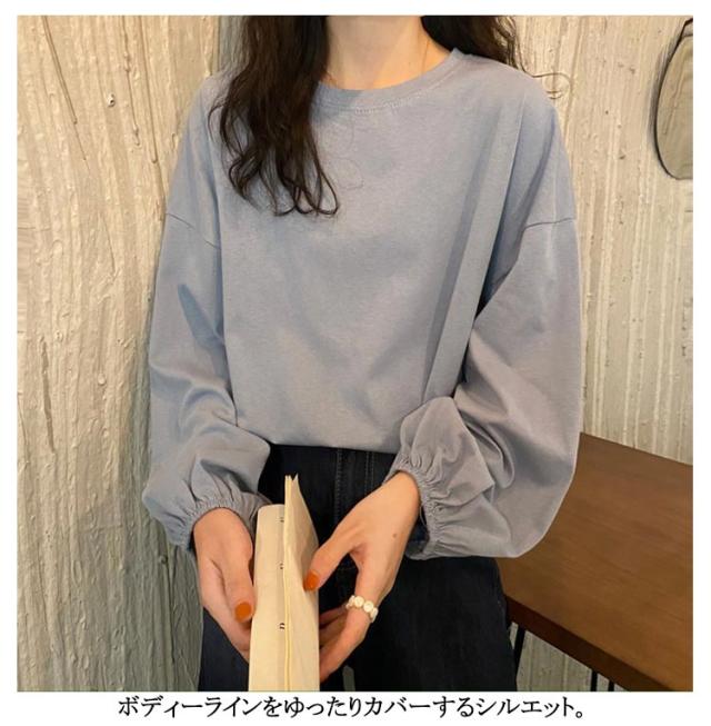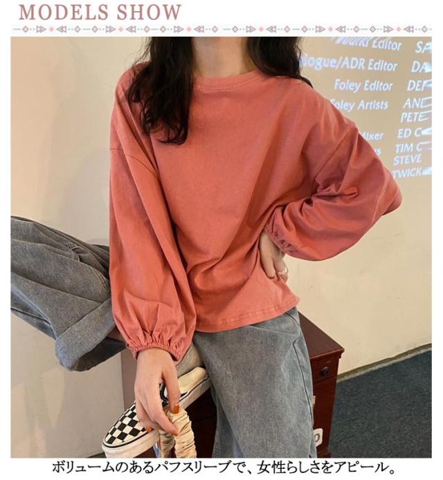 クルーネック 重ね着 tシャツ tシャツ トップス ドロップ レディース 無地カットソー 送料無料 パフスリーブ シャツ インナー ロンティー 長袖tシャツ ゆったり カジュアル シンプル おしゃれ Tシャツ きれいめ 大人 カットソー