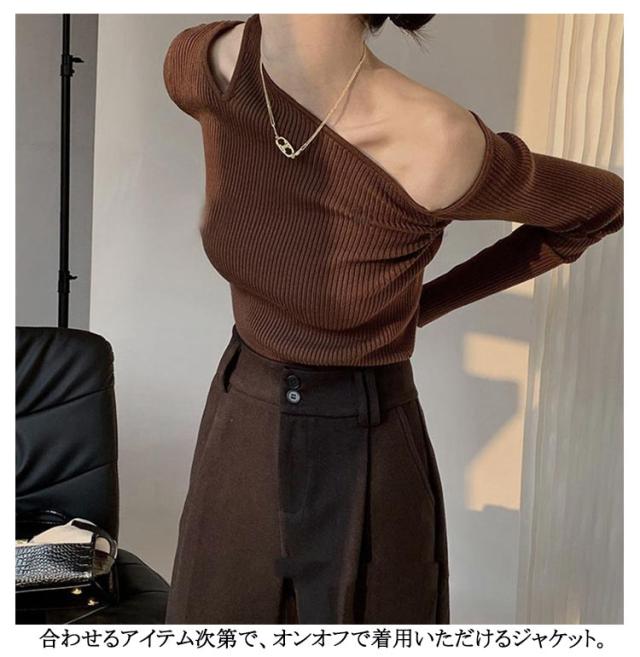 | ワンショルダーリブニット ちくちくしない肌触りのいい生地。 ストレッチ生地で、体に程よくフィットし上半身を綺麗に見せてくれ | |