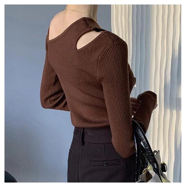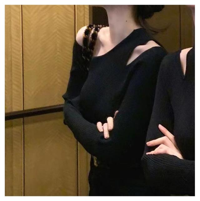 トップス ワンショルダー ニットプルオーバー ニット ニットソー ワンショルダー 細見え オフショル 長袖 セーター トップス リブニット オフショルダー 秋 冬 大人可愛い シンプル カジュアル フェミニン 春 秋 冬