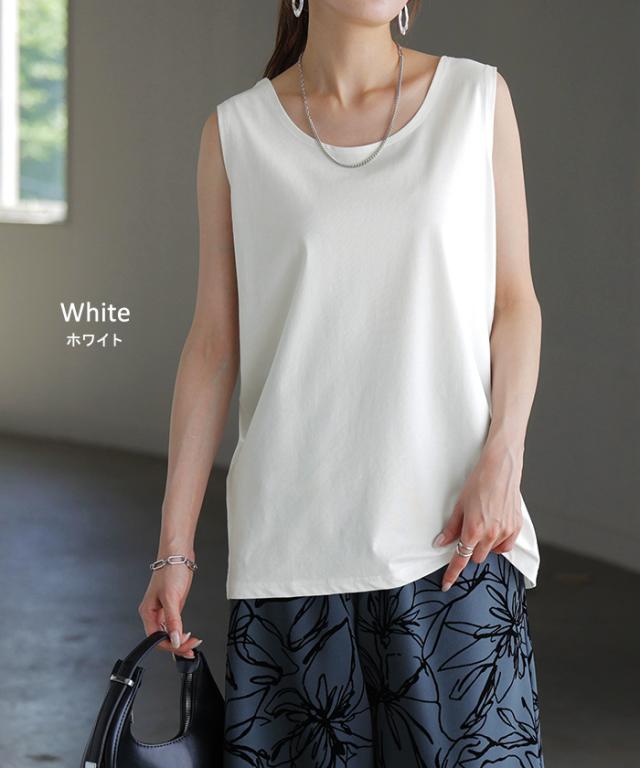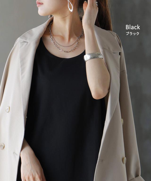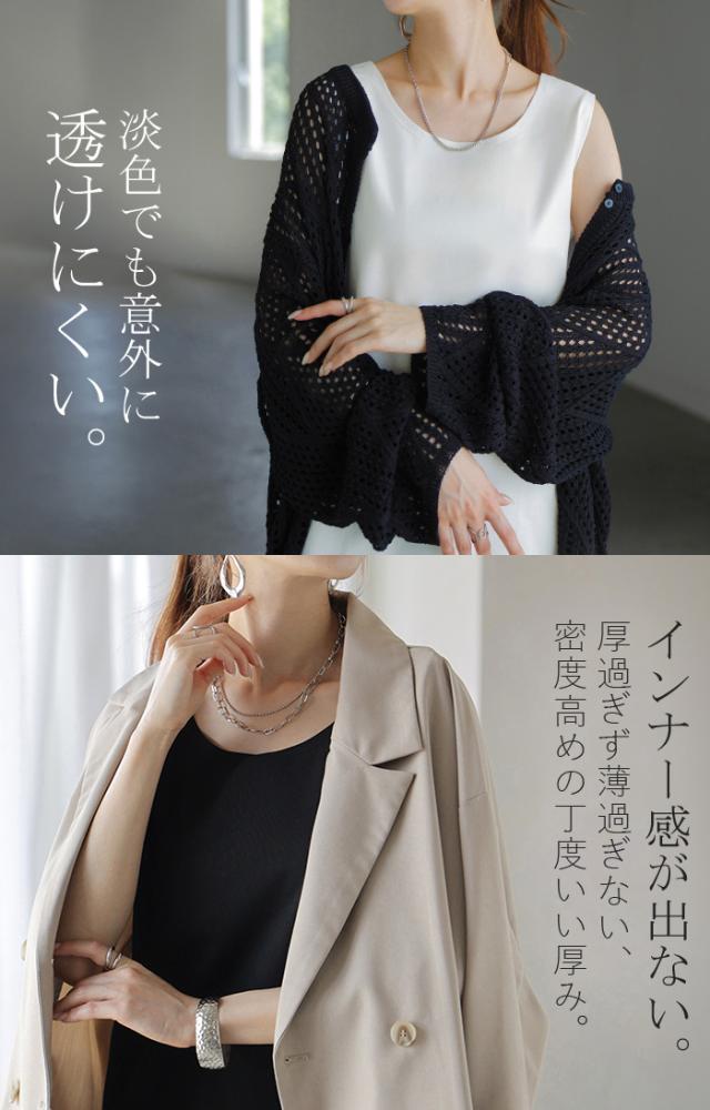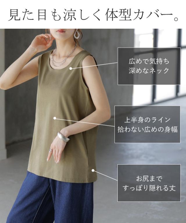 タンクトップ 接触冷感 レイヤード インナー トップス 一部4月下旬入荷 タンク レディース 無地 カットソー ノースリーブ キャミソール クルーネック ゆったり お尻が隠れる 体型カバー きれいめ 大人 黒 白 春 夏 HUG.U 秋新作