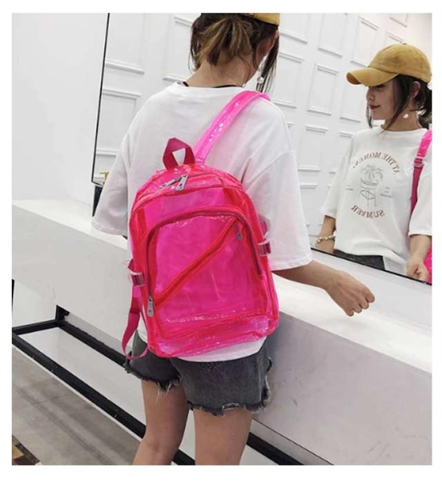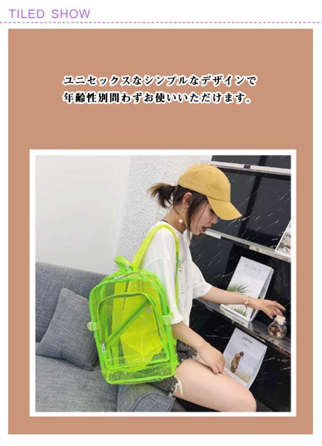 ネオンカラー リュック 蛍光 クリア バッグ クリアリュック リュックサック ビニールバッグ デイバック 大容量 大きめ プールバック 雑誌 A4ファイル 通勤 通学 旅行 ピクニック 中学生 高校生 女子 人気 韓国ファッション