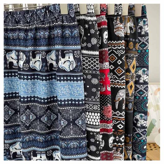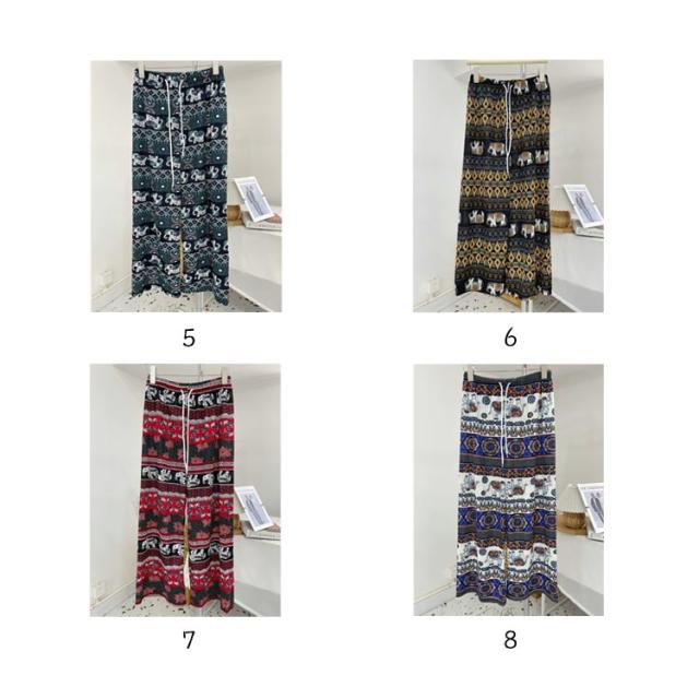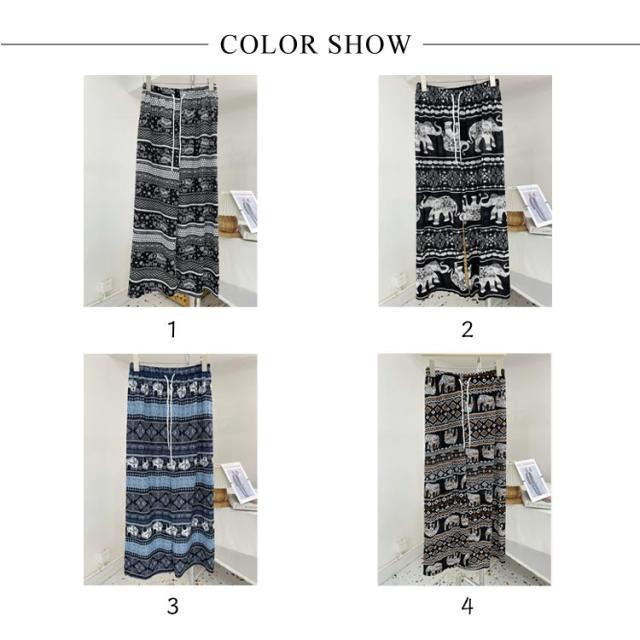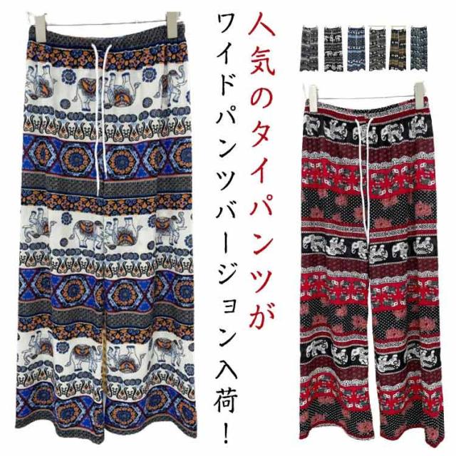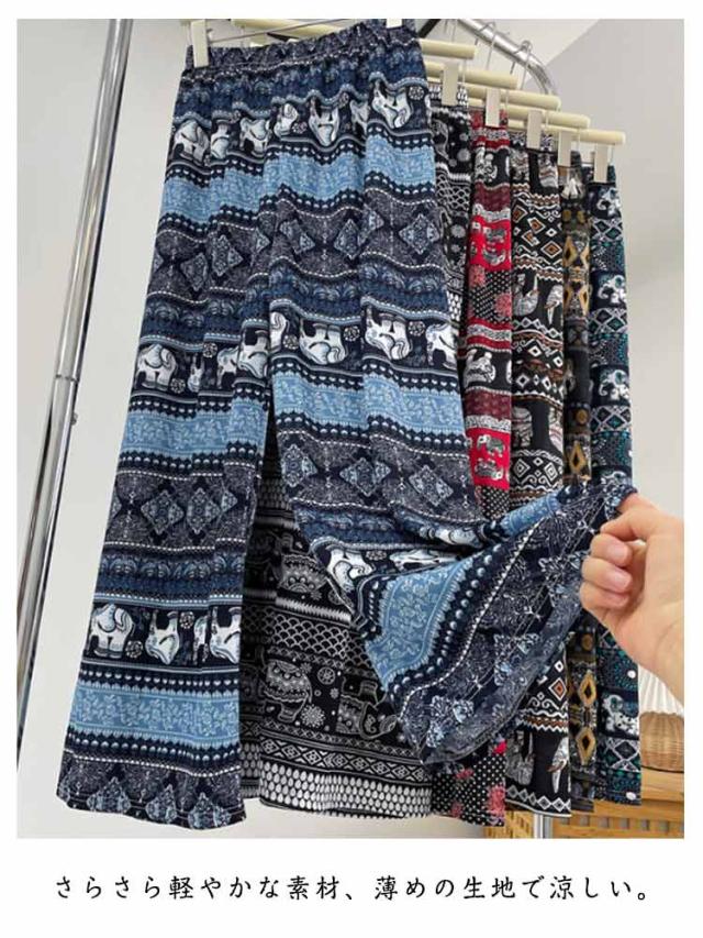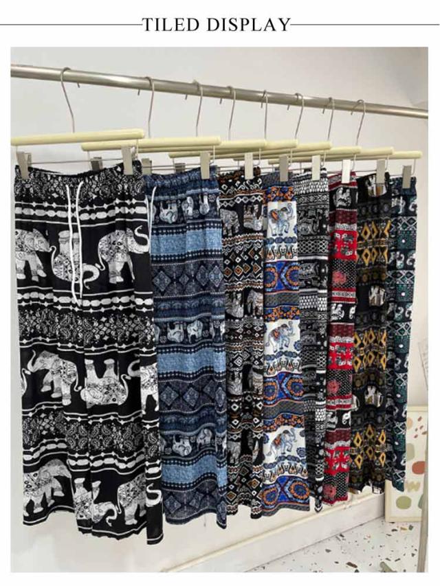 選べる2本セット 象さん柄パンツ タイパンツ ワイドパンツ レディース タイパンツ ゾウ 柄 冷感 涼感 総柄パンツ 夏パンツ アイス シルク パンツ ルームパンツ 長ズボン イージー 体型カバー 落ち感 薄手 涼しい