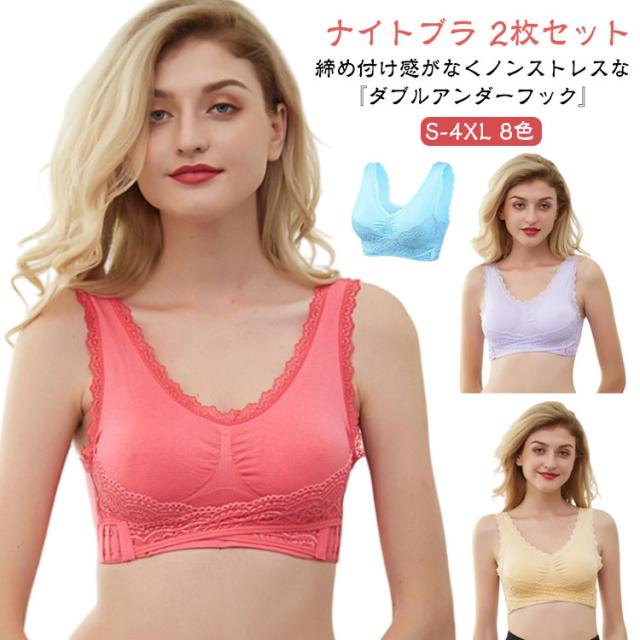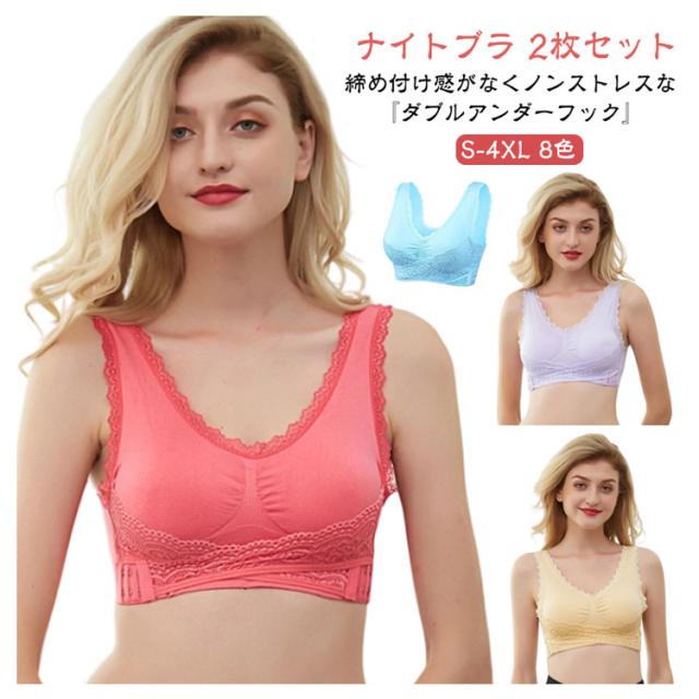 【2枚セット】ナイトブラ 育乳ブラ 育乳 フロントホック ブラジャー バストアップ 春夏秋冬 昼夜兼用 かわいい アンダー 大きいサイズ おしゃれ 小胸 マタニティ ふんわり レース 授乳 楽 通気性 ノンワイヤー 下着 ノンワイヤーブラ
