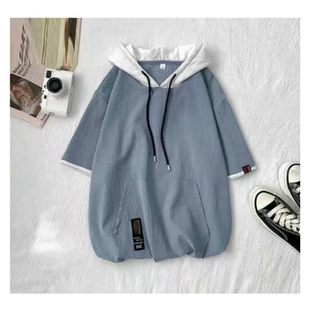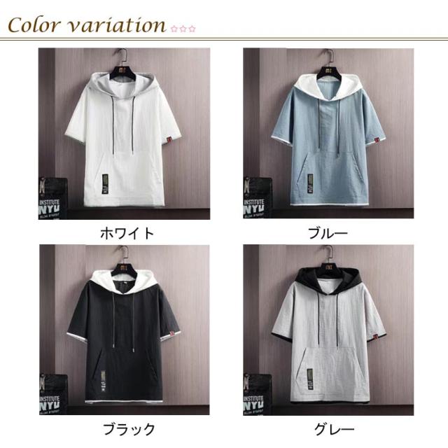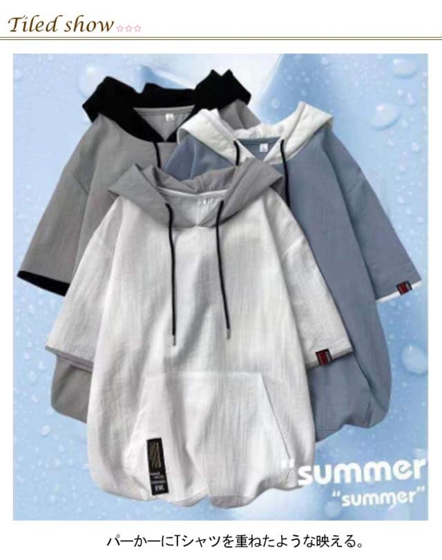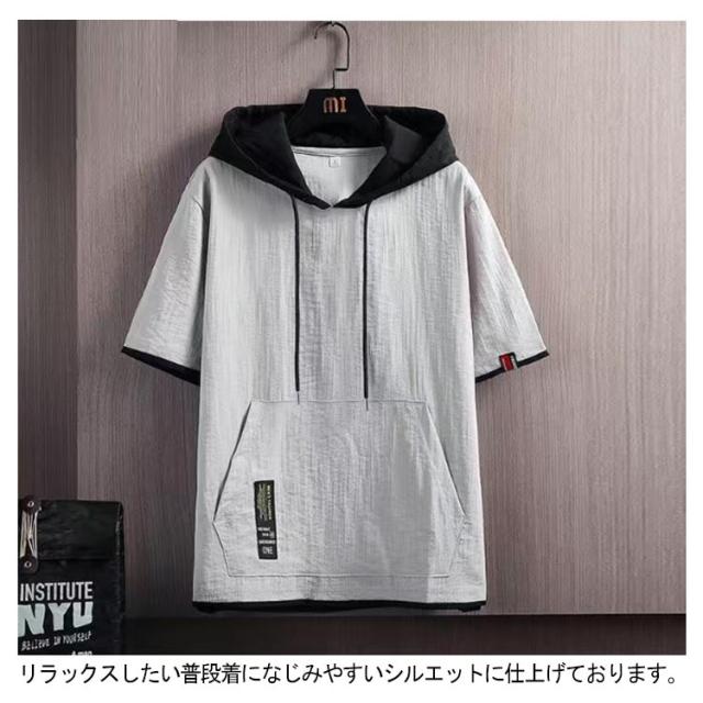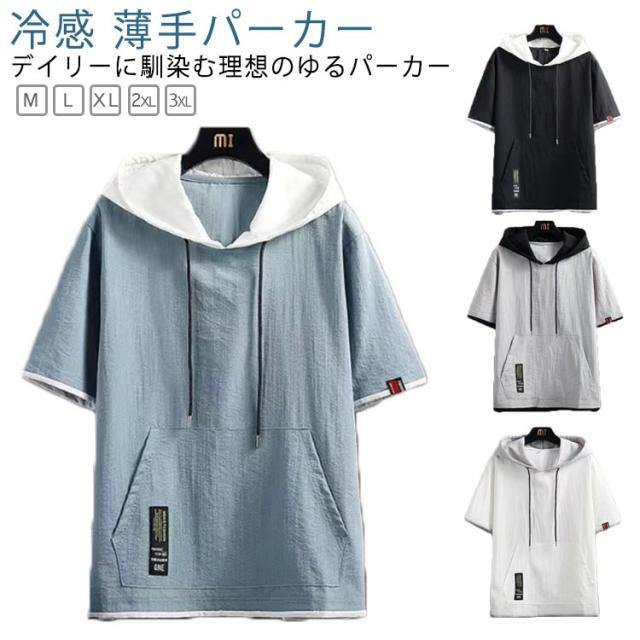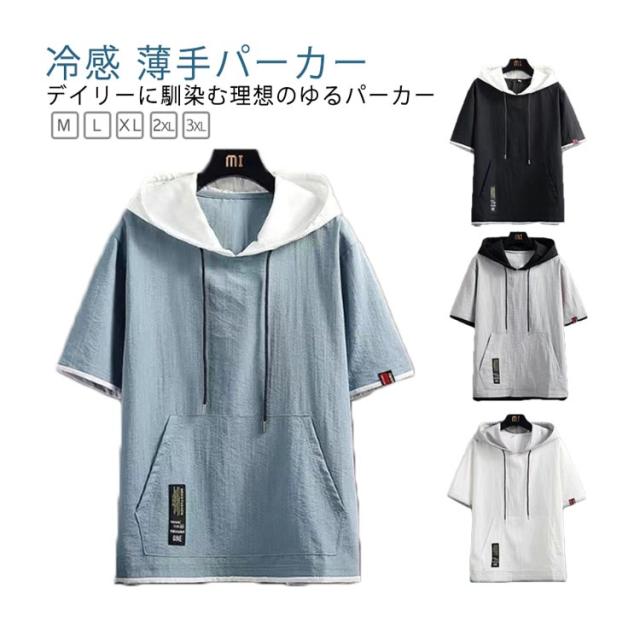 パーカー 半袖 半袖パーカー 夏用パーカー メンズ 無地 涼感 トップス パーカ 冷感 薄手パーカー フェイクレイヤード 夏 サマーパーカー フード付き カジュアル スポーツ 夏パーカー 薄手 男女兼用 シンプル 運動着 部屋着 夏服 スポーティ ダンス ストリート