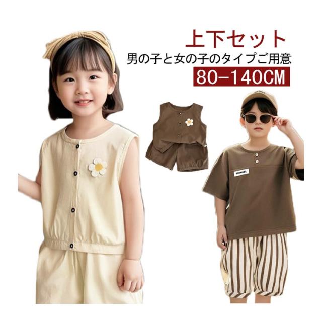 半袖シャツ ショートパンツ 上下セット 子供服 夏服 男の子 女の子 半袖 ノースリーブ シャツ ショート丈 パンツ セットアップ レジャー デイリー 普段着 通園着 通学着 運動着 韓国子供服 旅行 お出かけ 80 90 100 110 120 130 140 送料無料