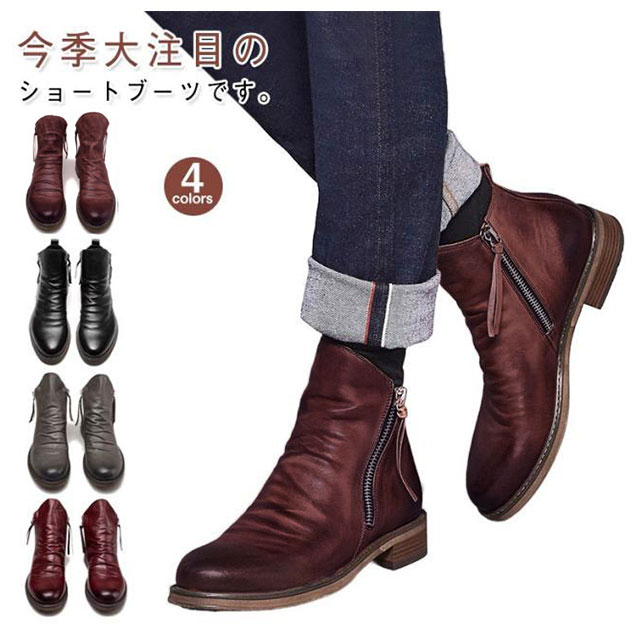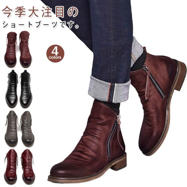 ブーツ メンズ ショートブーツ ドレープブーツ ワークブーツ チャッカブーツ エンジニアブーツ サイドジッパー メンズブーツ フォーマル ビジネス 通勤 仕事 履きやすい 秋 冬 滑らない カジュアルシューズ 大きいサイズ