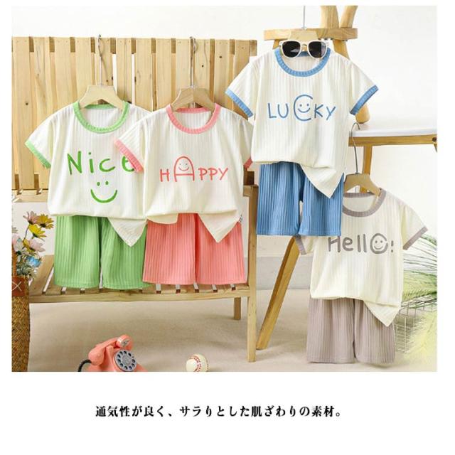 キッズ パジャマ 上下セット 2枚セット 男女兼用 モデール パジャマ 半袖 長ズボン 薄手 ルームウェア メッシュ 女の子 男の子 パジャマ 寝巻 ルームウェア 全8色 夏パジャマ キッズ 寝冷え対策 ベビー 上下セット ルームウェア