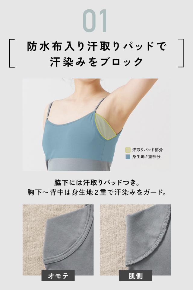 汗のお悩み、これ一枚に全部詰め込みました!カップ・汗取り付き キャミソール 素肌ドライシリーズの最高峰!コーデをもっと自由に!