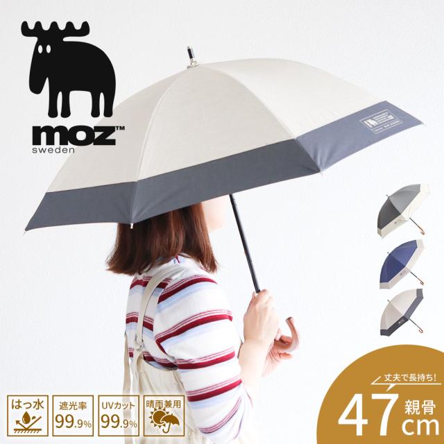 moz 傘 レディース 47cm 晴雨兼用 1級遮光 UVカット 紫外線対策 長傘 レイングッズ 雨具 撥水 手開き 軽量 梅雨 アンブレラ アウトドア ブランド ロゴ バイカラー シャンブレー調 かわいい おしゃれ 小さい コンパクト 雨傘 日傘 黒 ブラック ネイビー ベージュ モズ 554975