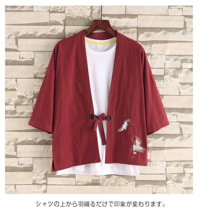 羽織り パーカー 和柄 夏服 羽織 コート 浴衣 和柄 シャツ 着物 和風 パーカー 甚平 夏祭り 7分袖 ゆったり カーディガン トップス 和式 夏服 メンズ 開襟シャツ カジュアル 紫外線防止 和式パーカー 鳥柄 花火大会