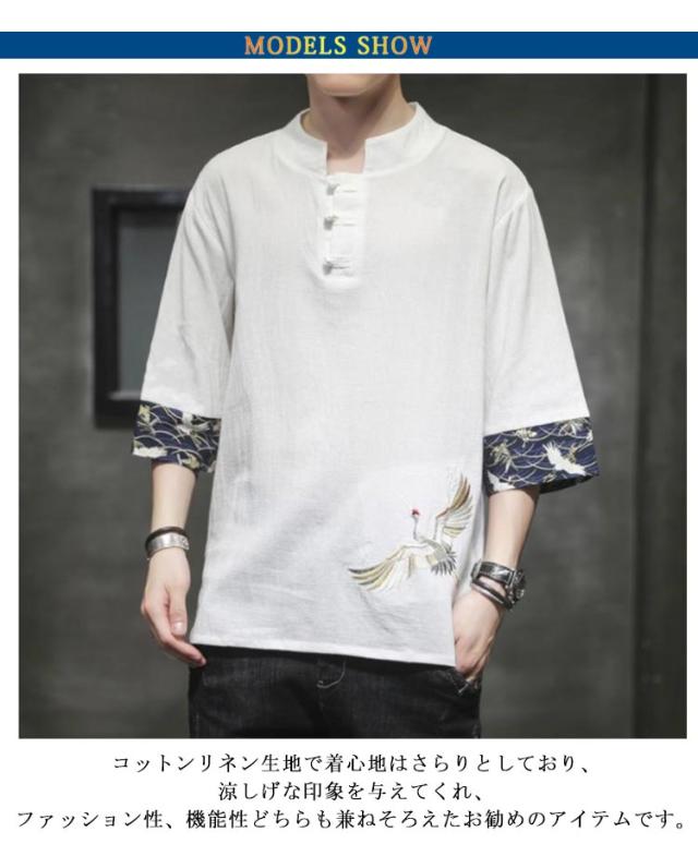 半袖Tシャツ 五分袖 綿 半袖Tシャツ トップス 和式 和風 カットソー 和柄 メンズ ゆったり 大きいサイズ 和柄 シャツ 刺繍 Tシャツ 柔らかい 通気性