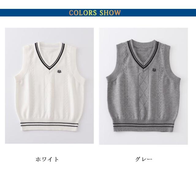 | 配色ライン+ケーブル編みがポイント。 普段はもちろん色々なシーンで着用できるベストです。 首元を綺麗に見せるVゾーンと、程よくゆとりを持たせたシルエットが清楚さを演出! 綿混素材のスクールベストで、毛玉がつきにくい。 ご家庭でも気軽にお洗濯できるので、春夏だけでなく秋冬オールシーズン着回せる! みんなと差が付くおしゃれなデザイン・学生制服にも、なんちゃって制服にもおすすめ。 | |