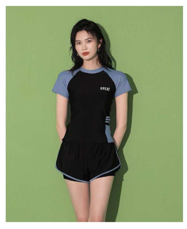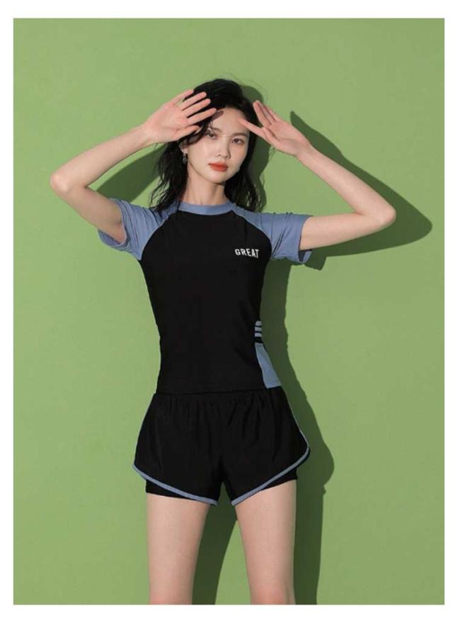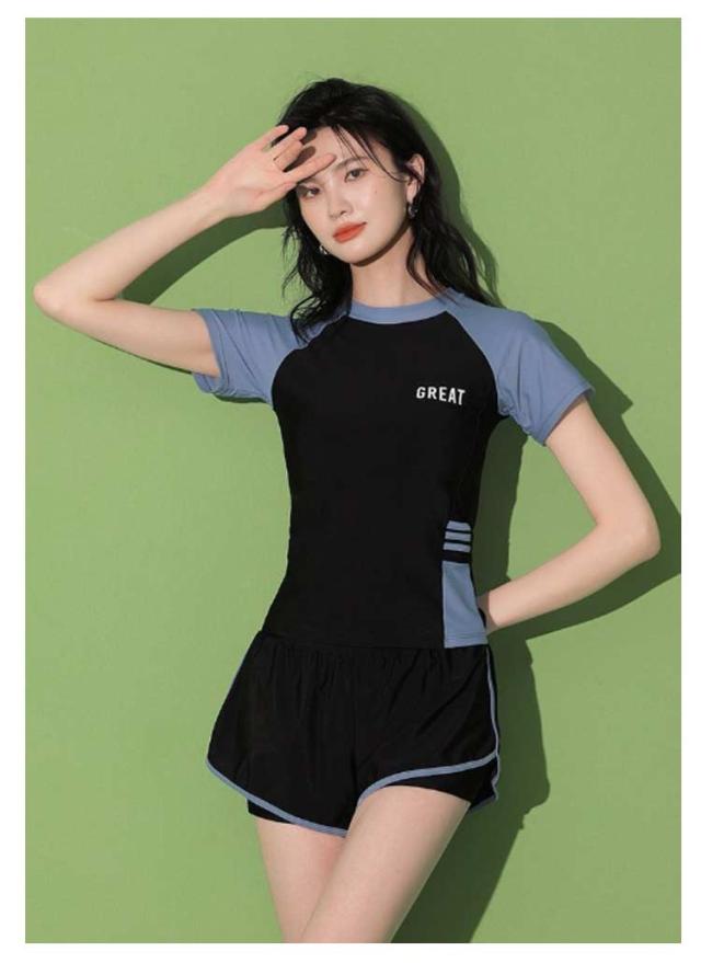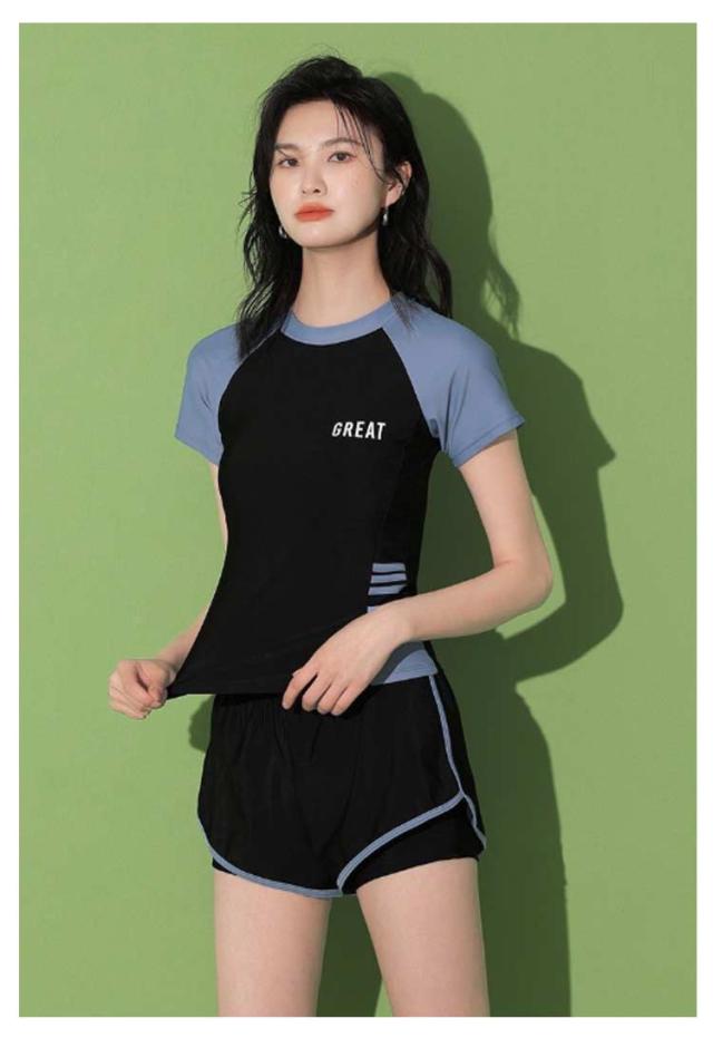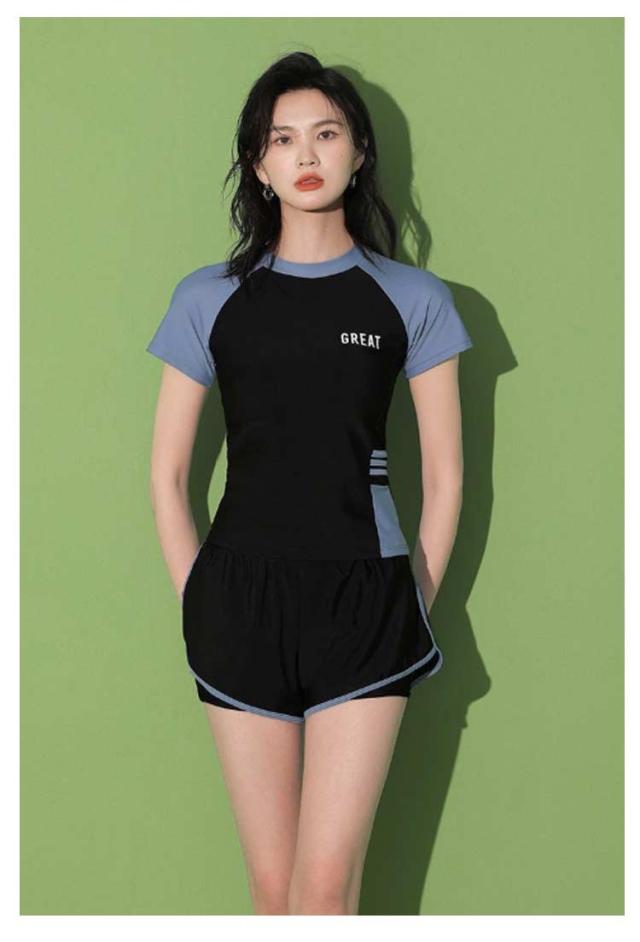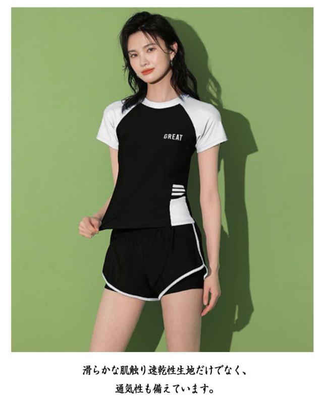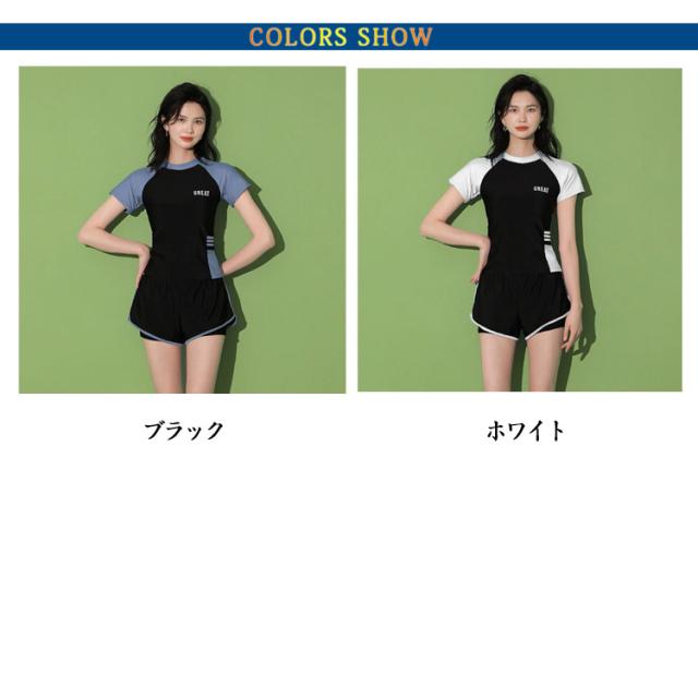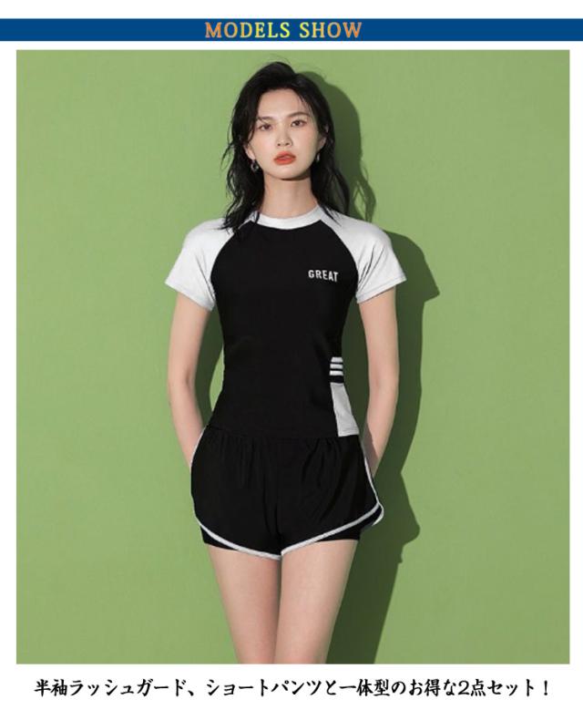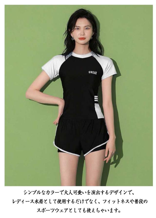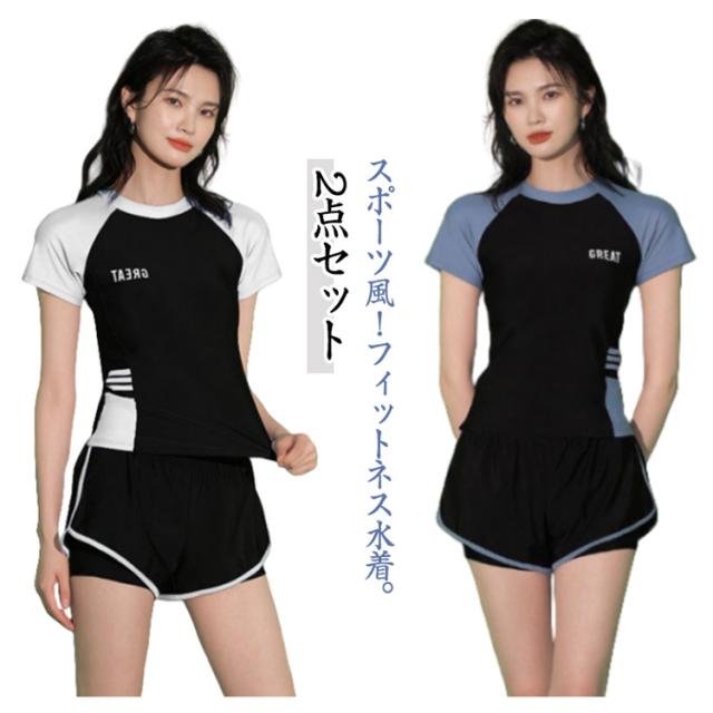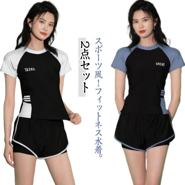 半袖 水着 タンキニ フィットネス水着 体型カバー 可愛い スクール水着 スポーツ風 2点セット 女性用 胸パッド付き 学生 2点セット ラッシュガード 女の子 レディース 水泳 サウナ 温泉 海水浴 中学生 高校生 学生 ママ
