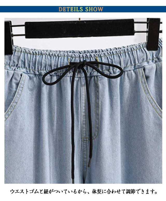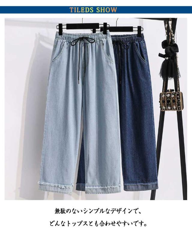 ボトムス ウエストゴム 大人コーデ 春 ジーンズ レディース 夏 ワイドパンツ ゆったり 薄手 ハイウエスト ロングパンツ 体型カバー デニムパンツ 楽ちん 美脚 脚長効果 女性用 ルームウェア