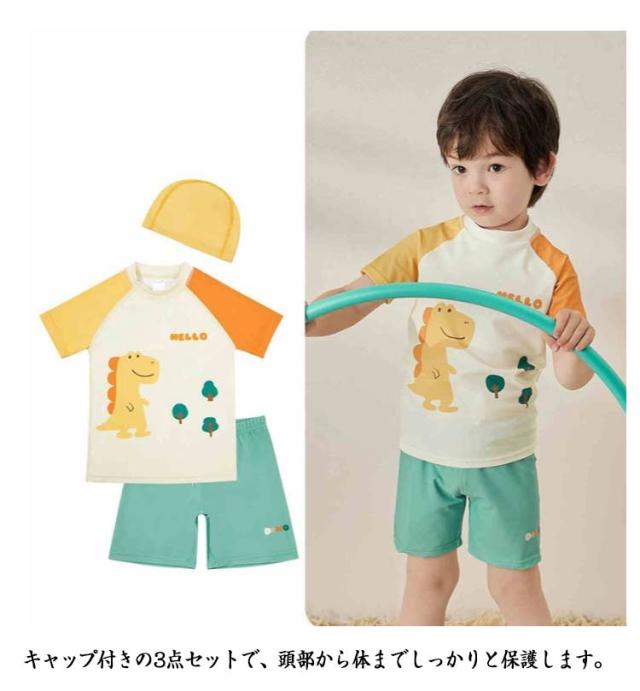 日焼け対策 上下セット プール 水着 ショートパンツ 3点セット 子ども用 キャップ セパレート 幼児 ベビー男子 UV対策 キュート 小学生 uvカット スイムウェア 男児用 水着 水遊び 快適 海 川 アウトドア