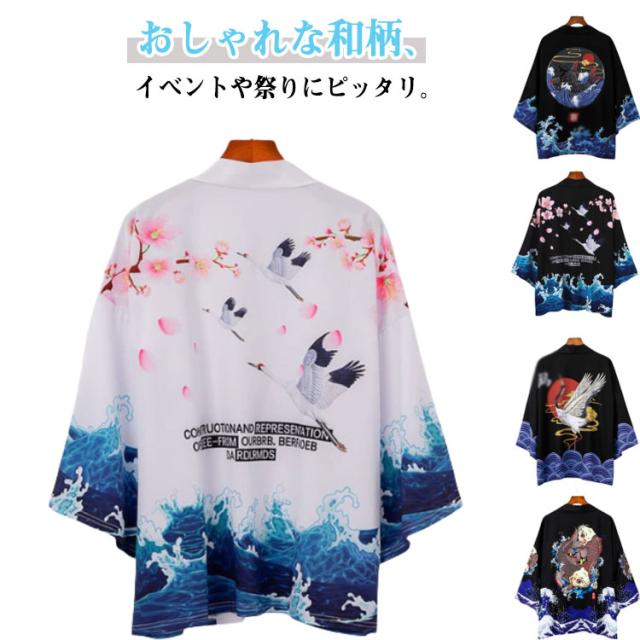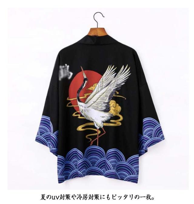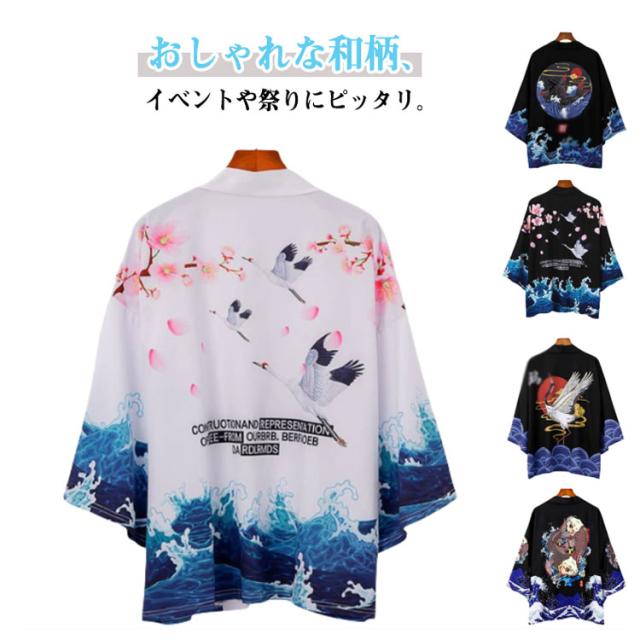 | おしゃれな和柄、イベントや祭りにピッタリ。 通気性に優れた、清涼感がある素材でこれからの季節には手放せない。 肩幅と身幅に余裕を持たせたビッグシルエットで楽な着心地。 夏のuv対策や冷房対策にもピッタリの一枚。 | |