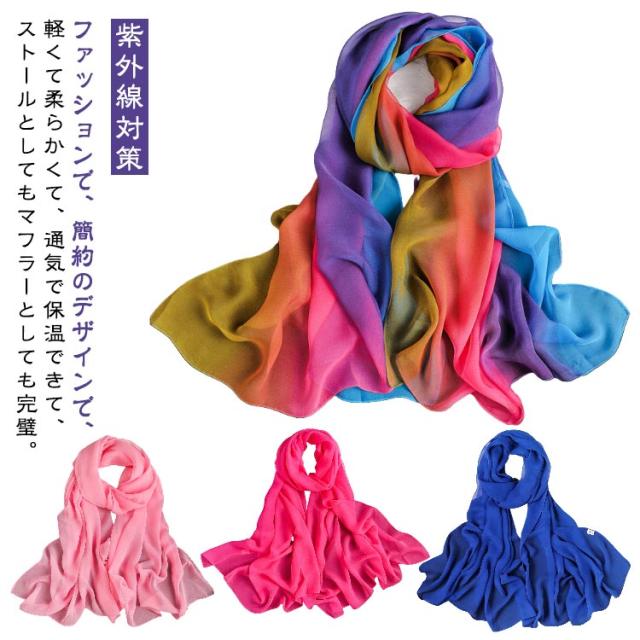 スカーフ 薄手 レディース 無地 大判 ストール UVカット 紫外線対策 UVケア 敬老の日 ギフト ストール バッグスカーフ 夏用 春 グラデーションカラー ネックカバー 日焼け防止 首のシワ隠し 薄手 首カバー 紫外線 冷房対策 男女兼用 衣装