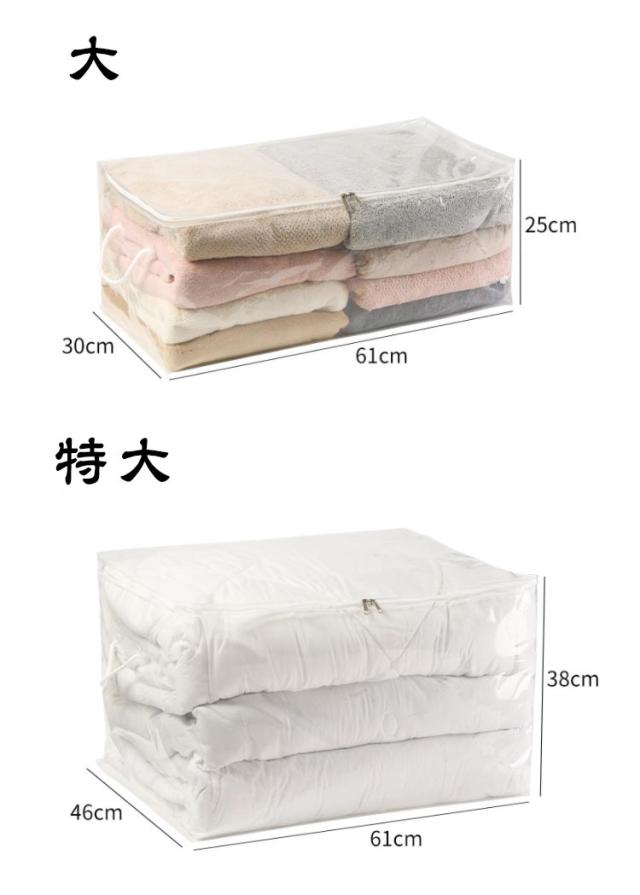 | クリアタイプ!羽毛布団をコンパクトに収納出来る布団袋セット。 外から中の物が見え何が入っているか一目瞭然! 大切な衣類を湿気やホコリから守る。 | |