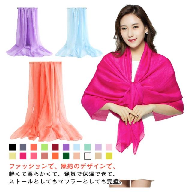 | ファッションで、簡約のデザインで、軽くて柔らかくて、通気で保温できて、ストールとしてもマフラーとしても完璧。 夏に紫外線をカットし、こもった熱を逃すため、涼しく日焼けを防止できます。 超薄く柔かいので、持ち運びにとても便利です。 上質な生地で美しい光沢感と滑らかな質感が特徴でさらっとかけるだけですごくファッション感じるストール。 プレゼントに最適 :成人式、ホワイトデー、春分の日、入学式?入社式、母の日、敬老の日、秋分の日、、七五三、クリスマス、誕生日 | |