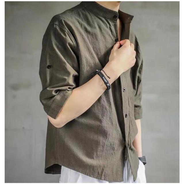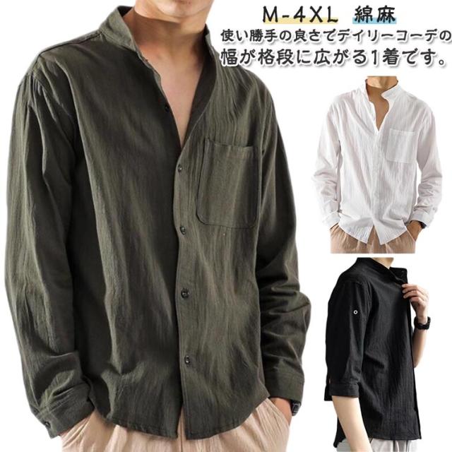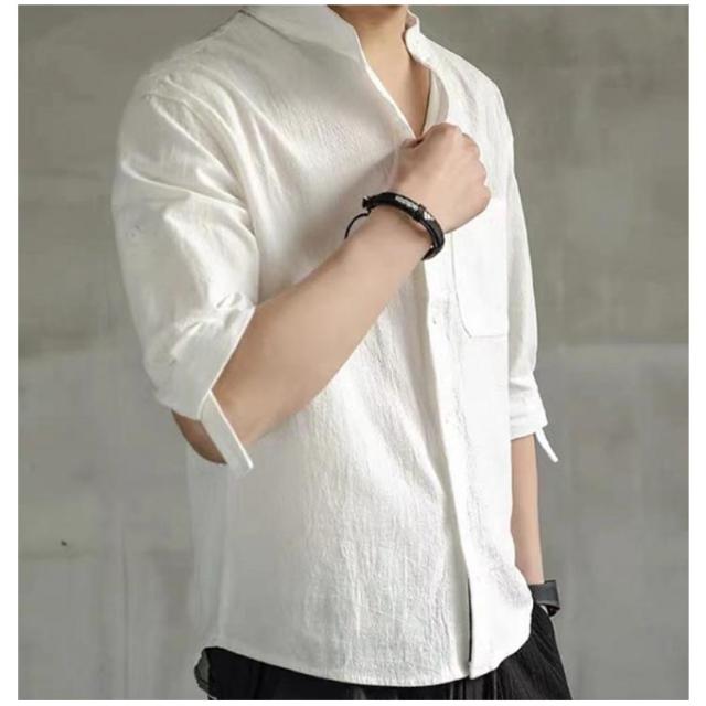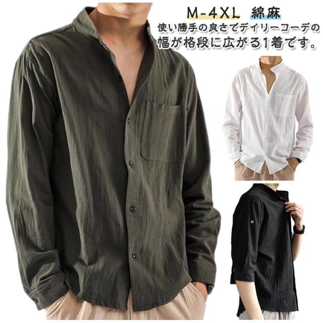 綿麻風 ゆったり 男性用 シャツ カジュアル メンズ 七分袖 大人 ヘンリーネック カジュアルシャツ 立ち襟 お兄系 無地 夏 無地 tシャツ 通学 おしゃれ 通勤 七分袖 長袖シャツ トップス 夏用 大きいサイズ ビジネス 長袖 春 夏 秋 冬 コーデ 父の日