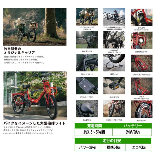 ◆商品情報◆ 積む・のる・遊ぶ CAPTAIN STAGのアウトドアイメージを表現した力強い電動アシスト自転車。 走破性を高めるセミファットタイヤを履き、モーターによる前輪駆動とペダリングによる後輪駆動を合わせた、両輪駆動方式を採用。 ペダルの踏力を検知し前輪のモーターを回転させ走りをアシスト。同時にチェーン駆動により後輪も回転、漕ぎ出しがラクに、安定感が増す両輪駆動で走行します。(※前輪モーターのアシスト駆動は時速24km/hまで) 高出力で軽量なリチウムイオンバッテリーを採用。簡単に取り外しできる分割タイプ、バッテリーだけを室内に持って来てチャージ可能です。ピッキングに強いディンプルキーが3本付いています。 商品名 eバーギー電動FDB206 アーミーベージュ 品番 YG-1503 製品サイズ(約) 169×60×105cm ハンドル高97〜101cm サドル地上高78〜93cm 折りたたみサイズ(約)94×64×90cm タイヤサイズ20×2.6 変速数外装6段 フレーム鉄 仕様/その他前輪アシスト大型サドルBMXペダル前輪V型ブレーキ後輪ローラーブレーキ ※ご使用のモニター環境により実際のカラーと異なる場合がございます。 予めご了承ください。※製品改良のため外観および仕様は、予告なく変更することがあります。【自転車防犯登録について】 自転車防犯登録とは法律によって定められた、自転車の利用者に対して登録を行うことが義務付けられている制度です。 当店では自転車防犯登録の受付は承っておりません。 お近くの自転車販売店やホームセンター等、自転車防犯登録の取り扱いがある店舗にて、ご購入者様ご自身で自転車防犯登録をご依頼ください。※納品後の交換は、ご注文品番以外のものが届いた場合を除き、交換・返品などはお受けいたしかねます。通常3〜5日(土・日・祝日を除く)で発送となります。商品がメーカー在庫のため、急な欠品が発生することがございますので、お急ぎの場合は、納期の確認をお願い致します。また急な欠品の場合、商品がご用意出来ない場合がございますのでご了承下さい。 個人のお宅への配達はできません。ご注文の際は御社名をお知らせ下さい。
