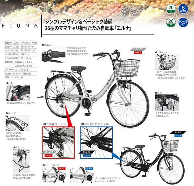 キャプテンスタッグ エルナ FDB266 シルバー 折りたたみ 6段変速 26型 自転車 サイクル YG-1524 メーカー直送 法人のみ配送