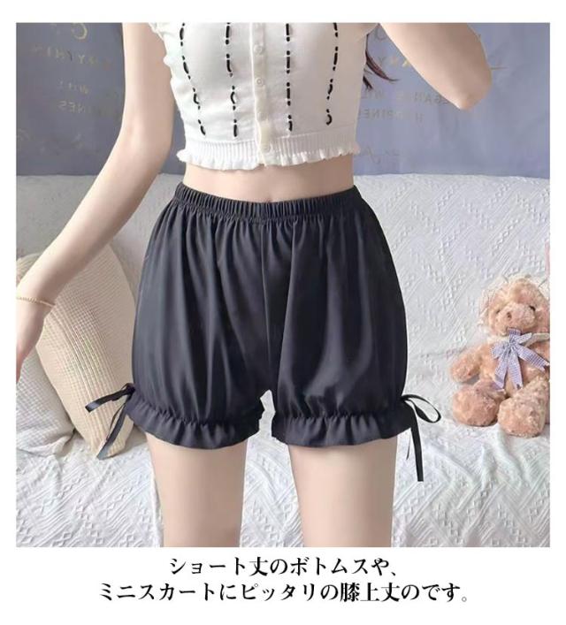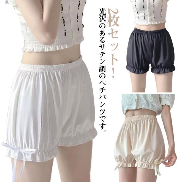 ショートパンツ 2枚セット かぼちゃパンツ ペチパンツ レディース パンチラ防止 短パン インナーパンツ ルームウェア かわいい 薄手 部屋着 夏 インナーウェア 3分丈 ボトムス ナイトウェア 光沢感 2枚セット 見せパン リボン