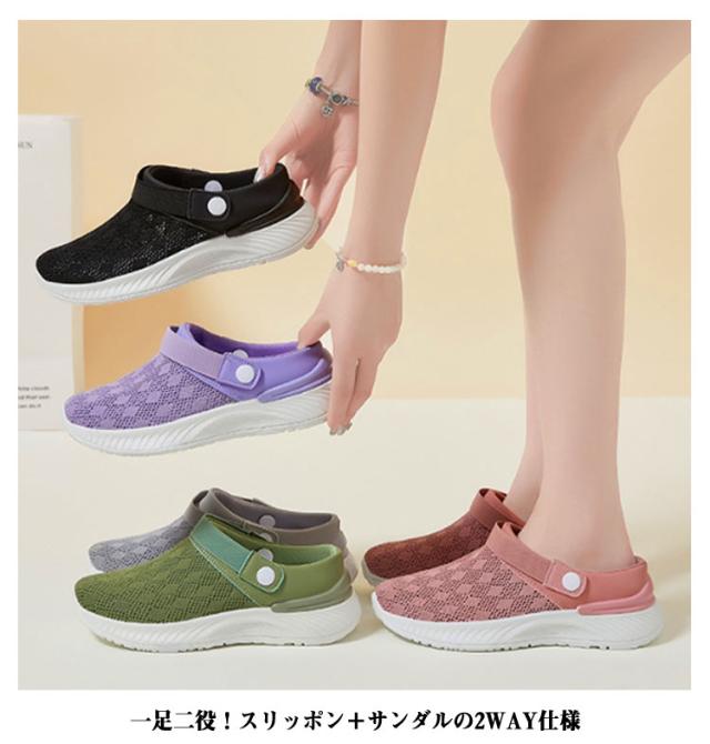 厚底 スリッポン サボサンダル スニーカーサンダル 滑り止め スニーカーサンダル メッシュ 履きやすい 通気性 軽量 つっかけ スポーツサンダル ストラップ付き 歩きやすい 2WAY 通学 通勤 アウトドア 春