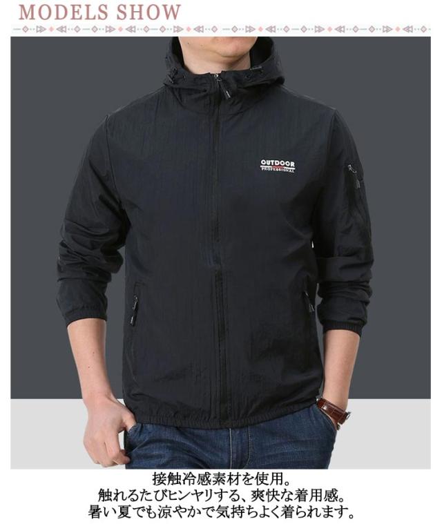 メンズ UVカット 秋 ジップパーカー パーカー ひんやり カジュアル 薄手 夏 送料無料 シェルジャケット 折りたたみ ジャケット 接触冷感 携帯 フード付き 春 軽量 日焼け防止 涼しい 吸水速乾 長袖 冷感 ジャケット シェルジャケット 冷房対策 通気 ドライ シンプル