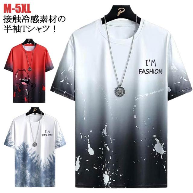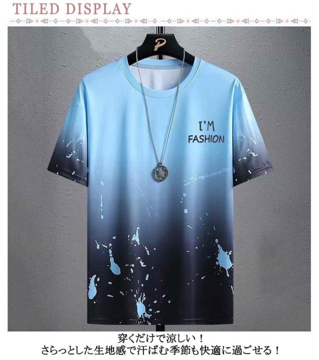 スポーツウェア 夏 半袖 メンズ 半袖 Tシャツ メンズ シンプル 涼しい メンズ 半袖 tシャツ 半袖tシャツ かっこいい グラデーション tシャツ 接触冷感 クルーネック トップス 送料無料 スポーツ ティーシャツ 夏服 夏 Tシャツ カジュアル