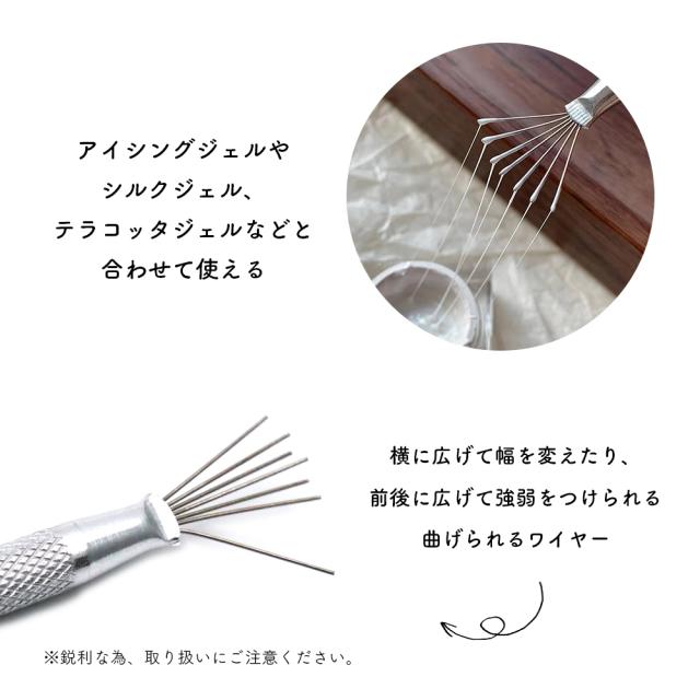 曲げられるワイヤーのため、横に広げて幅を変えたり、前後に広げて強弱をつけることが可能です。